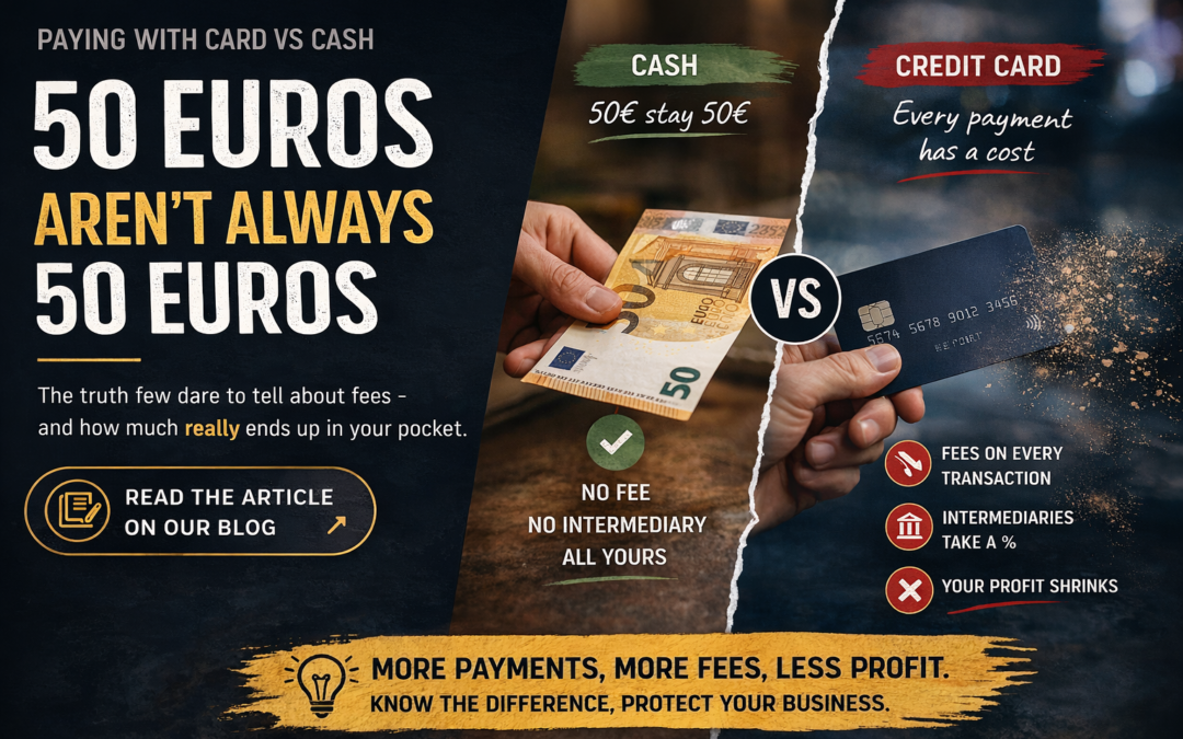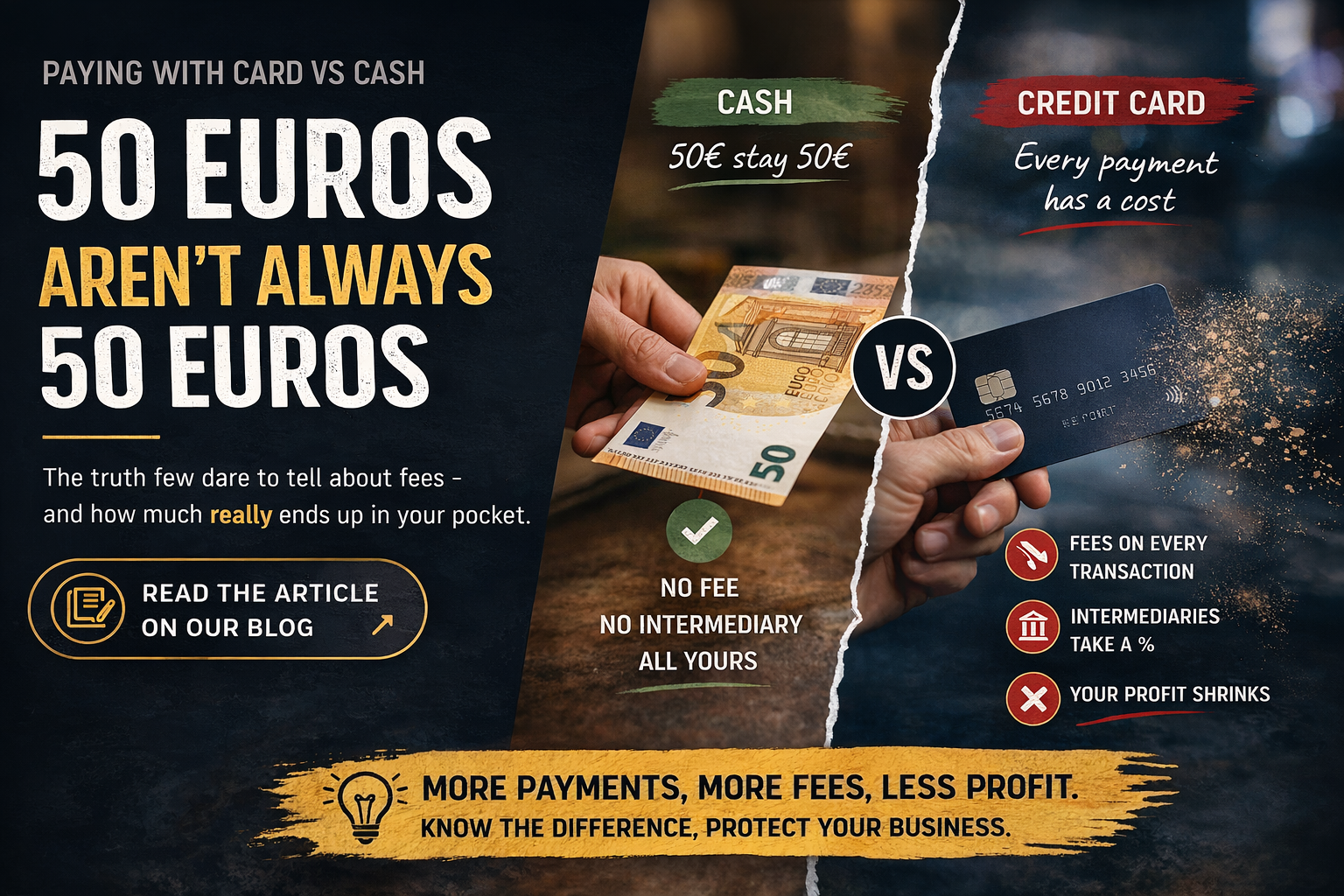 Those 50 euros go into the drawer and remain exactly 50 euros. No one touches them, no one reduces them. They are whole, complete, yours.