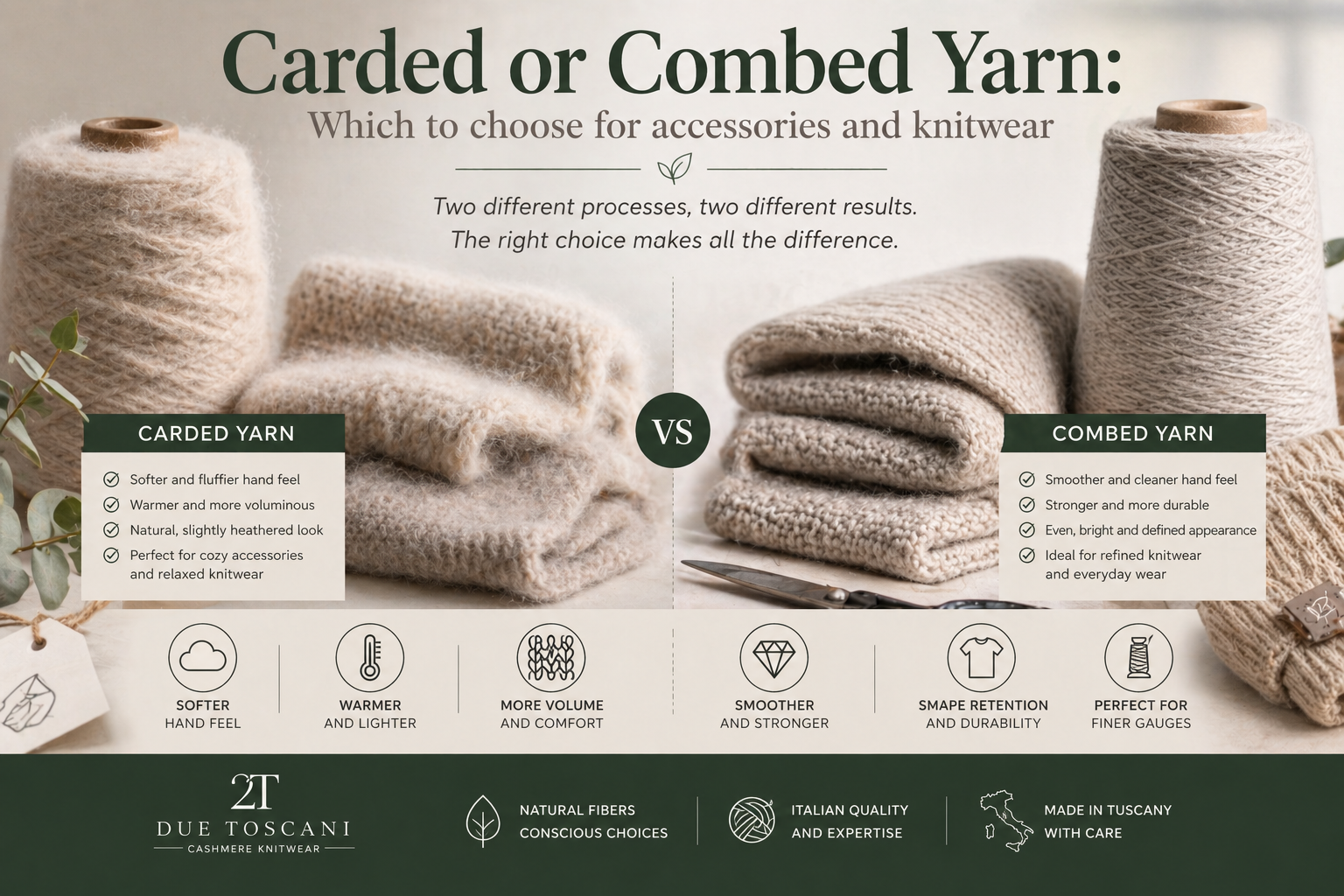 At Due Toscani, the choice between carded and combed yarn always starts from the final product vision.
