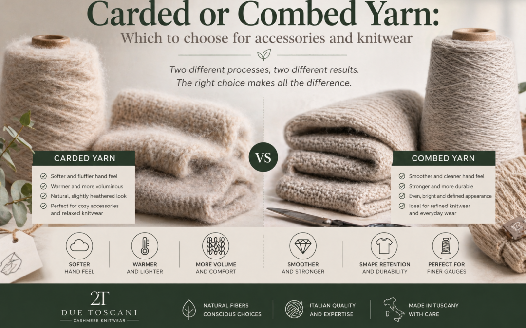 In the world of knitwear, choosing the right yarn is always a crucial step, but there is one technical distinction that more than any other influences the final result: the difference between carded and combed yarn. This is not just a visual or superficial variation, but a structural one that affects the fiber itself, the behavior during production, and the perception of the garment once worn. For a B2B client—buyer, brand, or design office—understanding this distinction means avoiding design mistakes and building collections that are coherent both aesthetically and commercially.